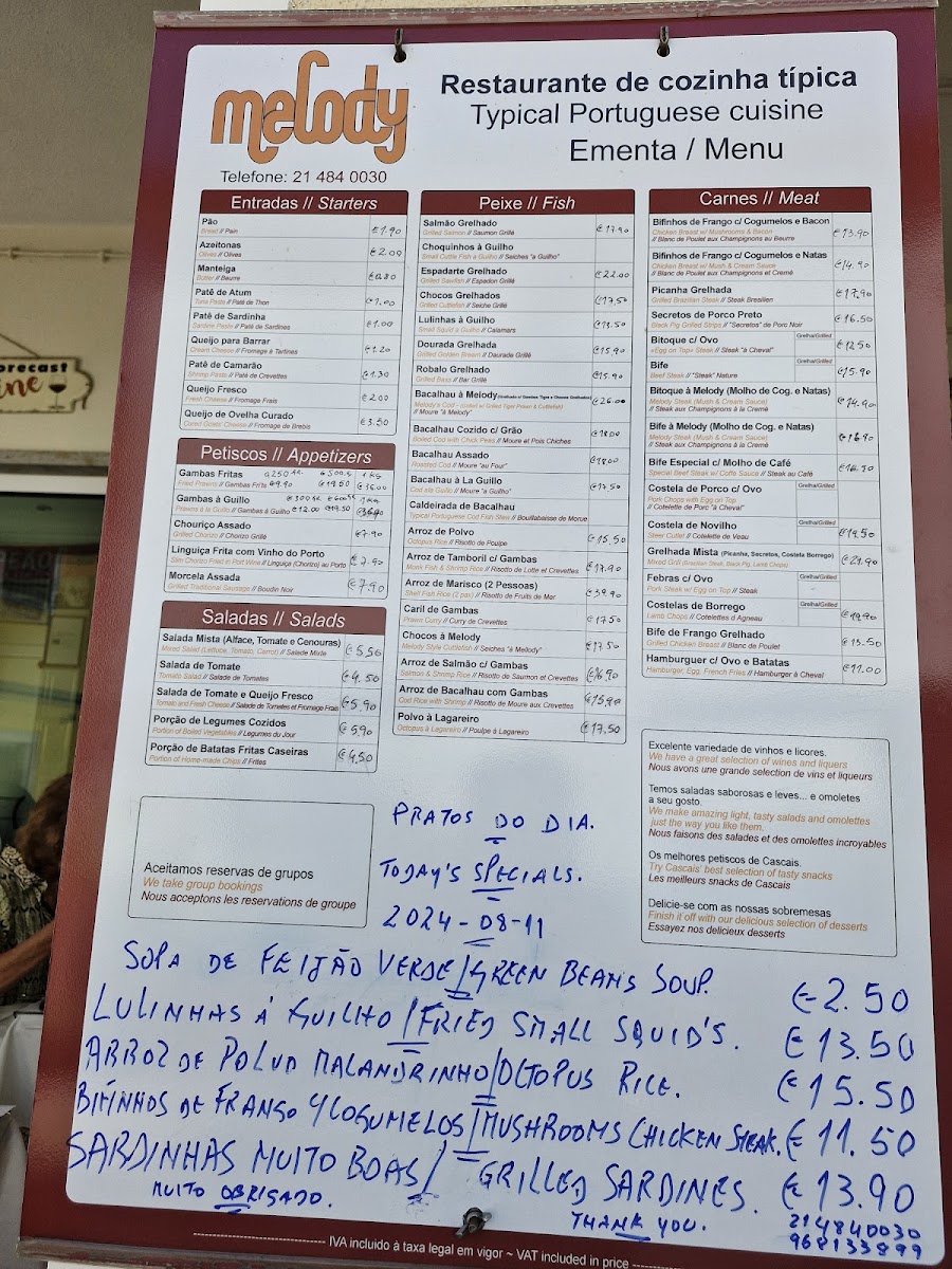 Despite the quaint size of the restaurant and limited payment options (cash or MB Way), the warm hospitality and genuine experience create lasting impressions. Melody stands out not just for its food but also as a testament to authentic Portuguese dining culture. A must-visit for anyone seeking the true flavors of Cascais!